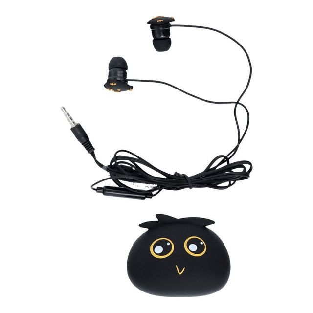 In-Ear-Kopfhörer für Kinder mit dem Motiv von Cartoon-Monstern und einer Silikonhülle zur Aufbewahrung des Sets. Sie haben ein eingebautes Mikrofon. Verwenden Sie sie mit jedem Gerät mit einem 3,5-mm-Anschluss.