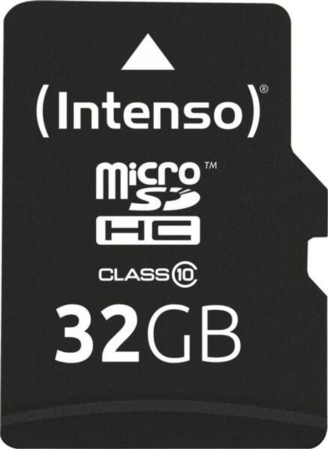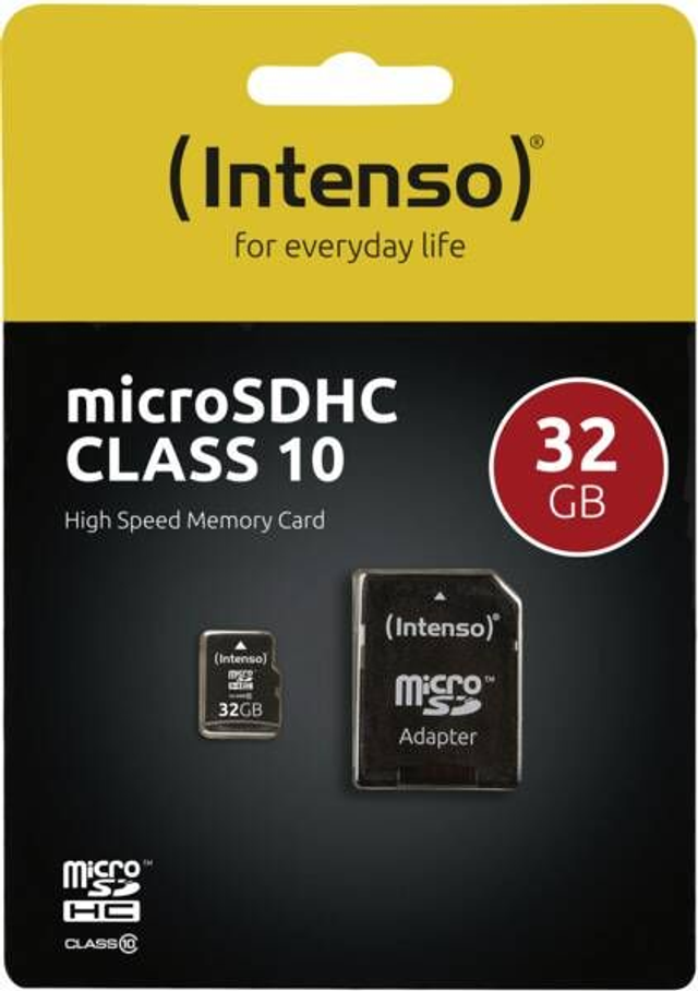 microSDHC-Card, 32 GB Speicherkapazität, bis zu 12 MB/Sekunde Schreibgeschwindigkeit, bis zu 20 MB/Sekunde Lesegeschwindigkeit, Class 10, SDHC-Adapter