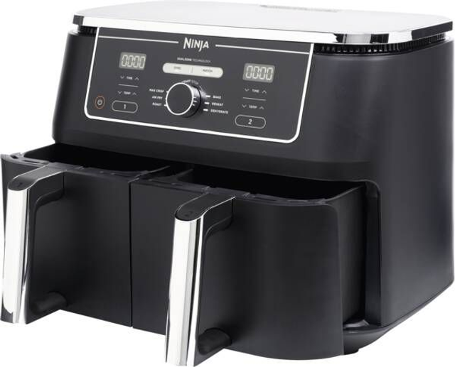 Doppel-Heißluft-Fritteuse, rechteckig, Display, 9,51 l Fassungsvermögen, Zusatzfunktionen Aufwärmen, Backen, Dörren, Rösten, 2.470 Watt