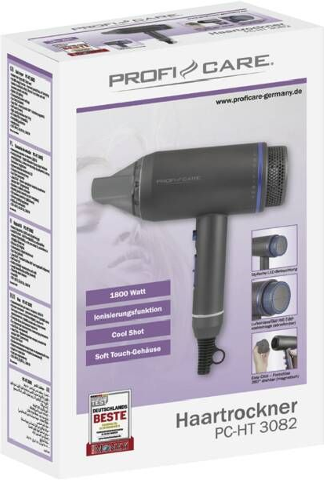 Haartrockner, 1.800 Watt Leistung, 3 kombinierte Heiz-/Gebläsestufen, Ionen-Funktion, Kaltstufe, Stylingdüse