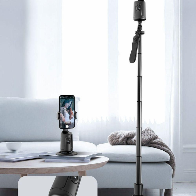 Der Griff verfügt über die Funktion der automatischen Gesichts-/Körperverfolgung mittels KI-Technologie und lässt sich horizontal um 360° drehen, vertikal um 37° nach oben und unten neigen. Das Stoßreduzierungssystem stabilisiert Videoaufnahmen und Fotos. Es ermöglicht Ihnen, das Telefon sowohl vertikal als auch horizontal zu montieren. Mit der Halterung können Sie Filme und Serien ansehen, Anrufe tätigen oder Live-Übertragungen durchführen, ohne das Smartphone in der Hand halten zu müssen.