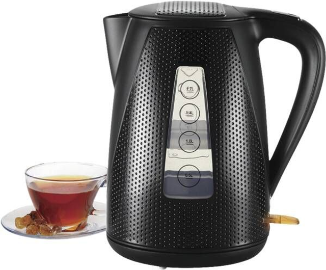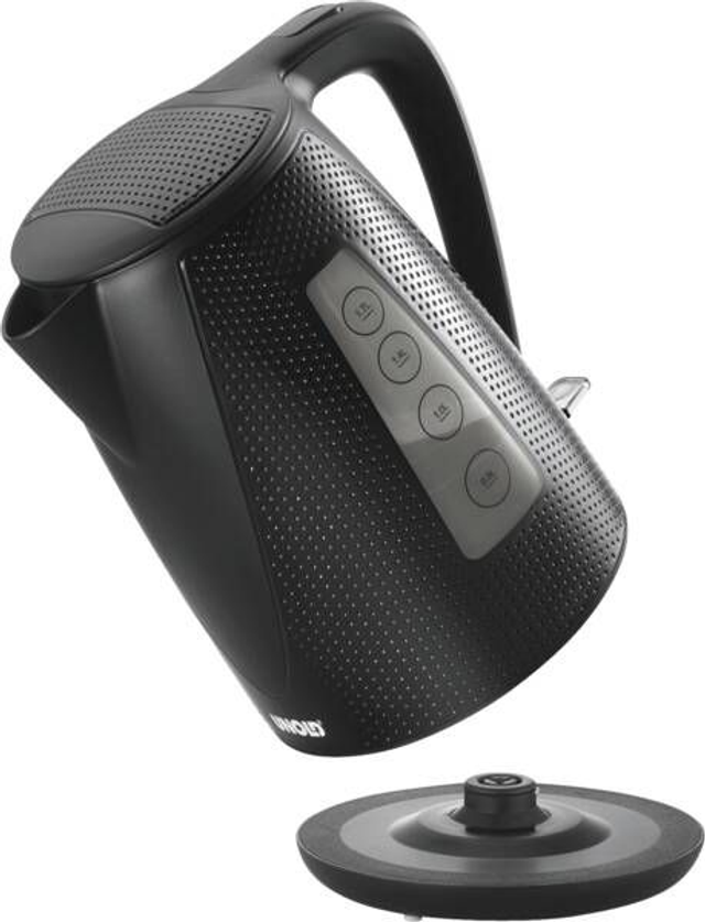 Wasserkocher, schnurlos, 1,7 l Fassungsvermögen, 2.150 Watt, 360 Grad Anschluß-Sockel, verdecktes Heizelement, Deckelöffnung per Knopfdruck, Wasserstandsanzeige, Ein-/Ausschalter, beleuchtet, Kalkfilter, herausnehmbar